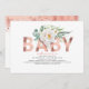 White Flowers Greenery and Rose Gold Baby Shower Invitation