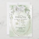 dreamy romantic white flowers and green leaves on gold oval frame botanical birthday party invitation