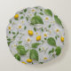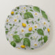White Flowers Lemons Green Leaves Pattern on White Round Cushion
