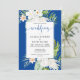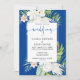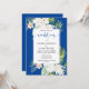 White Flowers on Blue Background Wedding Invitation