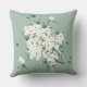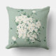 White Flowers on Green Chinoiserie Clouds Pattern Cushion