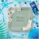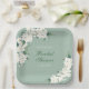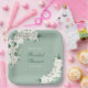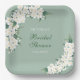 White Flowers on Green Pattern Bridal Shower Paper Plate