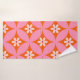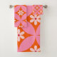 White Flowers on Mid Century Pink Circles Pattern Bath Towel Set