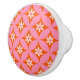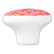 White Flowers on Mid Century Pink Circles Pattern Ceramic Knob