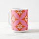 White Flowers on Mid Century Pink Circles Pattern Coffee Mug