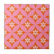 White Flowers on Mid Century Pink Circles Pattern Tile