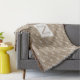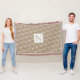 White small flowers brownish rustic floral throw blanket. It showcases a pattern of small flowers and leaves and your monogram on brown background.