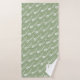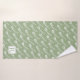 White small flowers on sage green floral bath towel set. It showcases a pattern of small flowers and leaves and your monogram on green background.