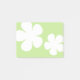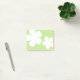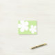 Notes with two white flower shapes on a spring green background.
