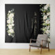 White Flowers Wedding Black Photo Booth Backdrop Tapestry