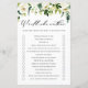 What would the mum rather do? | Add these fun and playful baby shower game card to your event. This customisable "Would She Rather" game card features watercolor illustrations of white flowers and greenery. Personalise by adding your own details. This white floral baby shower guessing game card is perfect for winter and spring baby showers and baby parties.