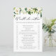 What would the bride rather do? | Add these fun and playful bridal shower game card to your event. This customisable "Would She Rather" game card features watercolor illustrations of white flowers and greenery. Personalise by adding your own details. This white floral bridal shower guessing game card is perfect for winter and spring bridal showers and wedding showers.