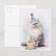 White Fluffy Birthday Cat – Party Hat Cat Postcard