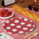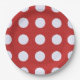 White Fractals Polka Dots Red Fractals Background Paper Plate