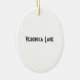 A simple, solid colour oval frame on oval-shaped ornament. If your favourite colour frame is missing, send a request. There is room on the back for more information.