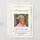 A white background, a faux gold frame . Personalise and add a photo, name, dates and your text. Black text.