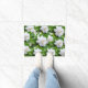 White gardenia flowers and green leaves on green Doormat