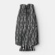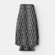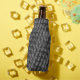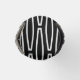 This bottle cooler has a geometric design of sort of flat-ended ovals repeating across the design in white on a field of black.