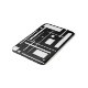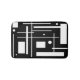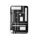 This white on black abstract art bath mat is made with white geometric shapes on a background of black, created by artist Kirt Tisdale.