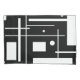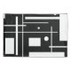 This white on black abstract art pillow case is made with white geometric shapes on a background of black, created by artist Kirt Tisdale.