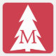 White Geometric Tree on Red with Custom Monogram Square Sticker