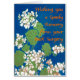 A pretty, floral 'Get Well' greeting card for someone having Back Surgery, with white geraniums on a blue background, from a screenprint by Judy Adamson. You can add your own inside message.