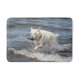 A white german shepard playing fetch with a stick on Lake George. This image was taken by Debbie Quick of Debs Creative Images. To see more photography by Debbie, check out her website at: www.debscreativeimages.com