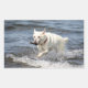 A white german shepard playing fetch with a stick on Lake George. This image was taken by Debbie Quick of Debs Creative Images. To see more photography by Debbie, check out her website at: www.debscreativeimages.com