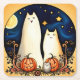 White Ghost Cats and Jack-o' Lanterns Square Paper Coaster
