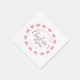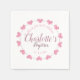 White personalized baptism napkins with a ring of pink heart flower petals.