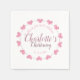 White personalized christening napkins with a ring of pink heart flower petals.