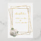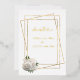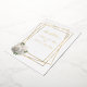A stunning wedding invitation, elegant in white and gold foil, with a glam white and gold rose accent