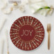 Joy text design with white glitter Christmas snowflakes on a dark-red background.