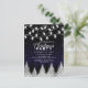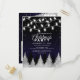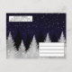 Celebrate the winter holiday season with these glamourous and gorgeous unique Christmas Party invitation postcards. They feature hand-drawn illustrated glowing hanging Christmas lights in white with a silver strand. The background is comprised of a black to navy blue gradient sky with faux printed silver glitter sequin snow falling on pine trees in silver glitter and black. This modern, elegant, and chic design will fill your guests with spirit and joy!