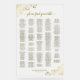 This beautiful seating chart features an elegant design with delicate golden curls and swirls in the corners on a partially transparent white background. The title is written in fancy script calligraphy and reads "please find your table." There is room for up to 300 names in alphabetical order with the names of the happy couple and wedding date at the bottom. Wonderful way to add style and class to your wedding reception while making it easy for your guests to find their seats.