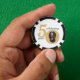 White and gold happy birthday poker chip for a 50 year old. Unisex design great for women or for men. Customise the age to suit your occasion and add a personal photograph of the recipient. Great for a 50th anniversary or birthday party decoration for a fiftieth birthday bash.
