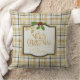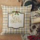 White Gold Black Plaid With Name Christmas Cushion