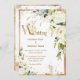 Gorgeous white botanical floral spray with gold accents. This is a lovely invitation. Trimmed in faux gold glitter to set the tone for romantic and classic elegant invitation. Gold splashes add to the beauty of this design. Beautiful and perfect for any season.