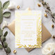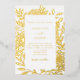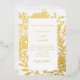 White background decorated with real gold foil botanical pattern and text.