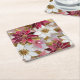 White Gold Burgundy Pink Christmas Poinsettias Square Paper Coaster