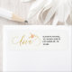 Elegant white gold wedding return address label with pink botanical peony flowers and gold calligraphy "love" script. Please note that the white background is editable. You can change it after selecting "customise further" option.