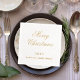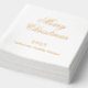 Personalise and add a year and text. Real gold foil text: Merry Christmas. White napkin.