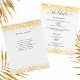 A modern, elegant wedding details/program/timeline. A white background decorated with faux gold confetti. Personalise and add your names and wedding details. Black coloured letters.