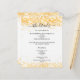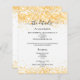 A modern, elegant wedding details/program/timeline. A white background decorated with faux gold confetti. Personalise and add your names and wedding details. Black coloured letters.