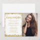Modern white and gold faux glitter Quinceanera photo invitations. These trendy sweet 15 invites are easy to personalise for your party. Designs are flat printed illustrations/graphics - NOT ACTUAL GOLD GLITTER.