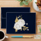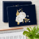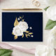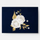 beautiful white flowers and gold leaves elegant navy blue wedding envelope.