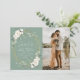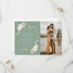 White & gold floral, sage green white typography design with stylish modern lettering. Our beautiful personalised wedding save the date cards feature a stunning design that complements any wedding theme. The front of the card features a personalised text along with a beautiful image.