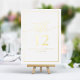 White & Gold Foil Calligraphy Photo Table Number. Personalise this custom design with your own photo.