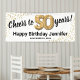 Celebrate a milestone birthday in style with our elegant fiftieth birthday party banner. Boasting a customisable simple white background, faux gold sparkle, and modern 50th birthday celebration text, this banner is the perfect way to make a statement. Plus, our fifty gold helium balloons add an extra touch of glamour. Easily personalise this banner to mark the special day with elegance and sophistication.
