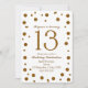 White & Gold Glitter Dots Sweet 13 Birthday Party Invitation